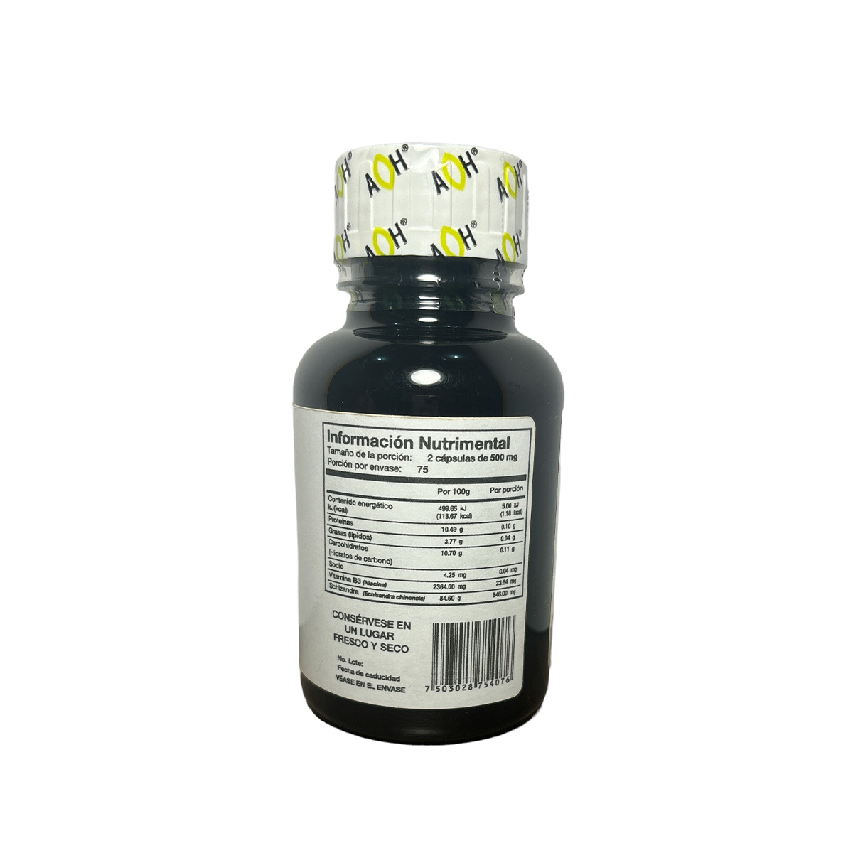 Polvo de fruto de schizandra (Schisandra chinensis), fécula de maíz, vitamina B3 (Niacinamida), estearato de magnesio y cápsula vegetal.